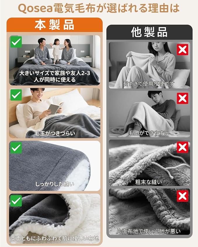 特徴 10段階温度調節・9段階タイマー・置き忘れ防止機能付き・使用簡単のコントローラー, フランネルとラムウールの組み合わせ・心地良い質感と優れた保温性, 丸洗いOK・ダニ退治・頭寒足熱配線・PSE認識済み・ギフトとして最適, 大判・大きい・大きめ・ダブルサイズ・掛け敷き兼用・4Way使い方, 過電圧保護・過電流保護・短絡保護・過熱保護速暖・恒温・省エネルギ10段階温度調節・9段階タイマー・置き忘れ防止機能付き・使用簡単のコントローラー, フランネルと… 表示を増やす