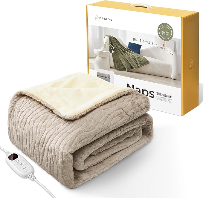 エペイオス(Epeios) 電気毛布 掛け敷き兼用 188x130cm 1-12時間タイマー付き 洗える 9段階温度調節 ぬいぐるみ生地 ふわふわ 厚手生地 ダニ退治 省エネ シングル 電気ブランケット ひざ掛け 肩掛け 掛け 敷き毛布 防寒対策 両面使え ラテ ベージュ