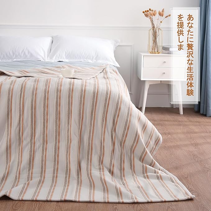電気毛布 加熱ブランケット 130x160cm 4段階温度調節 10時間自動オフ機能付き 波状キャメル色 オフィス・家庭用