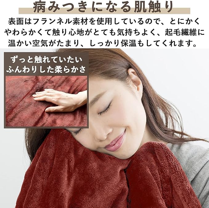 【きもちいい手触り】ふんわり起毛のフランネル素材を使用しているので、とにかく柔らかくて気持ちよく、起毛繊維に温かい空気がたまり、しっかり保温してくれます。
