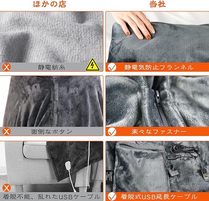 DR.PREPARE 電気毛布 ひざ掛け USB電気ブランケット フランネル150x85cm 3段階温度調節 丸洗いOK 防寒対策 屋外 キャンプ オフィス 家庭用 ファスナー USB延長ケーブル