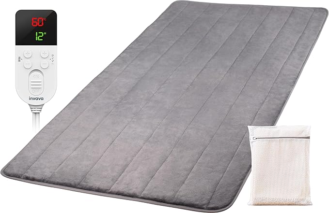 invava 180 80cm 電気カーペット 1畳サイズ 洗える 電気毛布 敷き シングル用【25~60℃までフリー温度調節、1~12時間タイマー付き】ホットカーペット兼用 一人暮らし 省エネ 切り忘れ防止タイマー 暖房カーペット PSE認証 寒さ対策 丸洗い可 洗濯ネット付き グレー