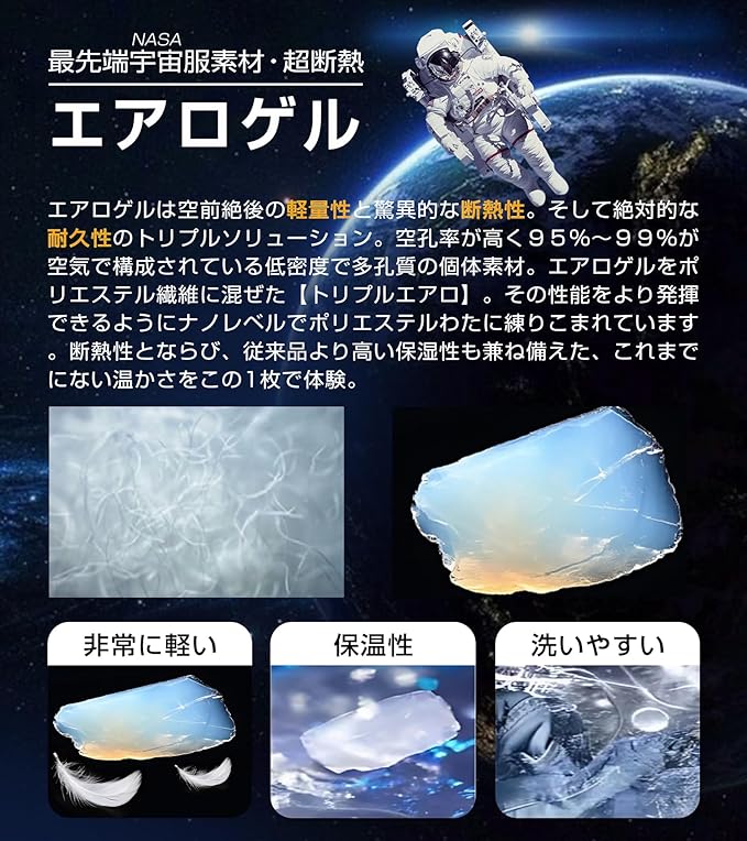 【コーヒー炭素繊維 宇宙服素材エアロゲル】弊社の冬用敷きパッドは中綿が「次世代の夢のような素材」と言われる環境にやさしいコーヒーファイバーを使用。エアロゲルは空前絶後の軽量性と驚異的な断熱性、そして絶対的な耐久性のトリプルソリューション。エアロゲルをポリエステル繊維に混ぜた「トリプルエアロ」。その性能をより発揮できるようにナノレベルでポリエステルわたに練りこまれています。断熱性とならび、従来品より高い保湿性も兼ね備えた、冷え込む毎日を、ぽかぽか、あったかーく過ごしましょう。