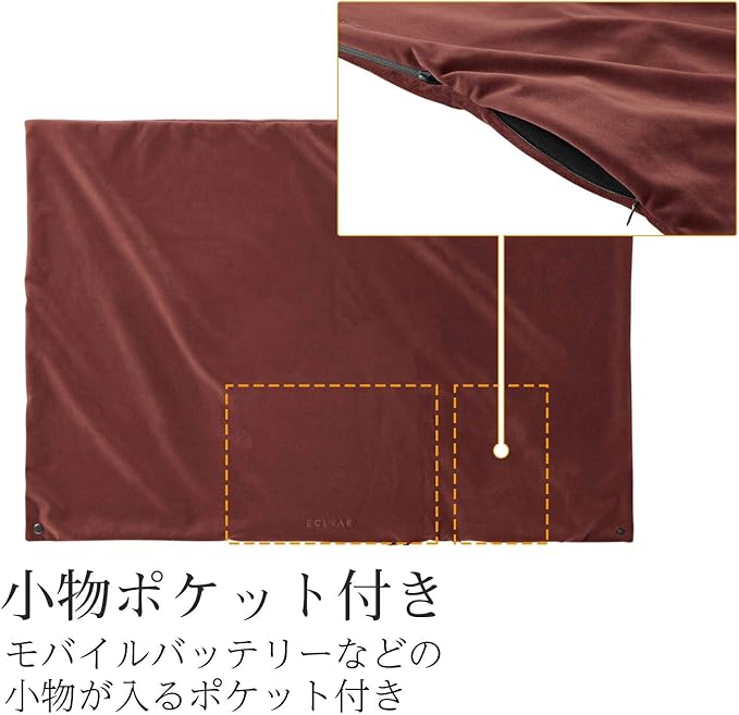エレコム エクリアwarm USBブランケット ホッと癒やされ42℃ A4サイズに小さくまとまる モバイルバッテリーOK 洗濯可 タイマー機能 ミニポケット ボタン付き 3WAY モーヴブラウン HCW-B01BR