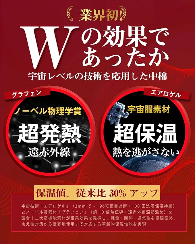 【グラフェン エアロゲル 二重先端技術の融合】宇宙技術「エアロゲル」は厚さ 2mm で - 196℃の極寒を遮断する超軽量断熱材です。微細な空気層が外気を遮りながら内部の熱を保持し、洗濯を 100 回繰り返してもその保温性能は持続します。一方、ノーベル賞素材「グラフェン」は、銅の約 10 倍の熱伝導率を誇り、体の熱エネルギーを遠赤外線へと変換し、深部からやさしく温めます。この二大素材が相乗効果を発揮することで、当該エアロゲル毛布の軽量性・断熱性・通気性を極限まで高め、これまでにない持続的な保温性を実現しました。冷え性対策はもちろん、厳寒地での使用にも十分対応できる性能を備えています。