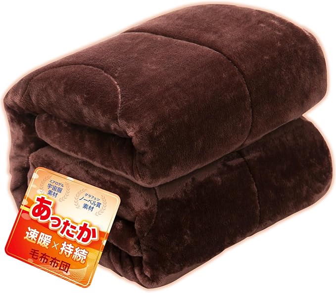 【毛布 ダブル 冬 厚手 速暖 持続 】本2枚合わせ毛布 は、ノーベル賞受賞技術のグラフェンおよびNASA宇宙服素材のエアロゲルをコアに採用し、吸湿発熱綿、帝人Mighty Top Ⅱ ECOを含む6種類の高機能中綿を組み合わせることで、冬季向けの革新的かつ高性能な冬用毛布 を実現しています。側生地には、日本伝統の起毛技術を応用したニューマイヤー生地(長毛フランネル)を採用し、肌触りと保温性の両立を実現しています。従来の寝具概念を覆す「極みの一枚」として、寒い季節の睡眠体験を根本から変えることを目指しました。小さな寝具の進化が、お客様の毎日の生活に大きな快適さと満足をもたらすと確信しています。