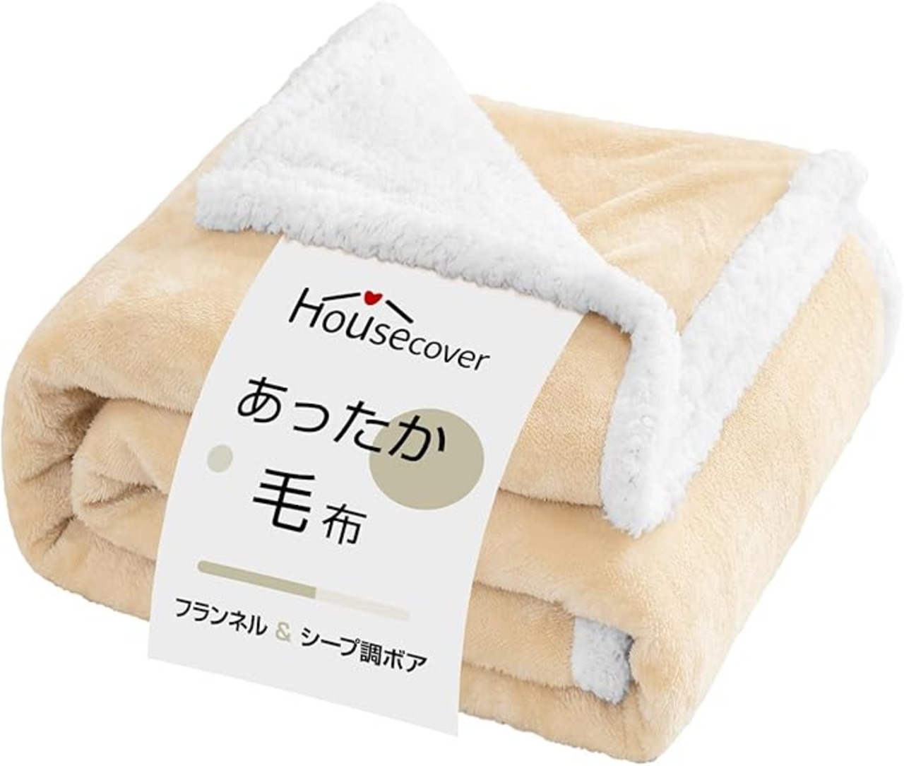 Housecover 毛布 ダブル ブランケット 秋冬用 あったか 二枚合わせ掛け毛布【二重構造:高級フランネル+高級シープボア】軽量 洗える 静電気防止 厚手 オールシーズン ふわふわ 暖かい 柔らかな肌触り 北欧風 軽量で暖かい (ダブル・180 200cm)