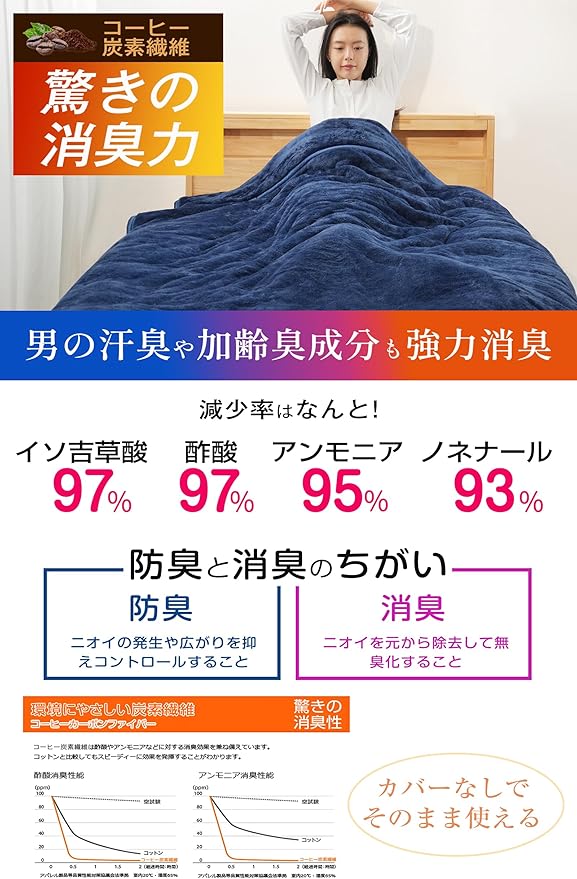 【従来のフランネルとは雲泥の差】従来のフランネルよりも10倍の水分保持率があります。汗を閉じ込めず肌と布地の間をすっきりさせ、摩擦で生じるチクチク感や湿気による雑菌発生をゼロに抑えます。普通の保湿加工生地は「洗うたび効き目が薄れる」のに対し、この暖かい毛布は何度洗っても潤い感がそのまま!静電気をよく抑え、毛羽立ちが少ないのも特長です。冬の暖かさと潤いを、一度に満たす贅沢な体験を、W極 の新しいフランネル素材で実現しましょう! 【素材にさらに光触媒消臭除菌加工を施す】太陽や蛍光灯の光が当たると、含有酸化チタンがイオン吸着力と強力な酸化力を発生し、有害物質を無害化・分解して増殖を抑える環境浄化技術です。湿気や寝汗による細菌を抑制、嫌なニオイを防ぎ、長く清潔にお使いいただけます。乾燥肌の方や、お子さん、ベッドのいるご家庭でも長く優しくお使いいただけます。