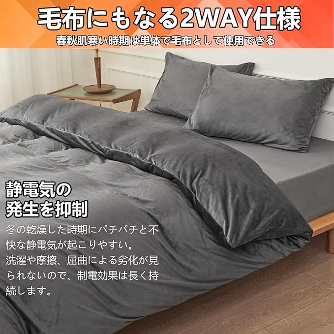 【毛布にもなる2WAY仕様】春秋肌寒い時期は単体で毛布として、寒い時期は羽毛布団や掛け布団と組み合わせて使用できるので長く使えます。季節の変わり目や微妙な温度調節に最適。