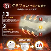 【ノーベル賞素材のグラフェンを使用ぽかぽか7層構造】掛け布団:①表地「接触温感」「静電気防止」8mm フランネル②「冷気遮断」アルミシート③「遠赤外線保温」「疲労回復」「静電気防止」「抗菌防臭」グラフェン+「超断熱」エアロゲル中綿④「保温」アクリルわた⑤更にグラフェン中綿層⑥帝人マイティトップⅡ「抗菌防臭」中綿+「超吸湿発熱」アクリレートわた ⑦表と共地。7層のそれぞれの機能を重ね合わせることで持続的な保温効果を実現しています。